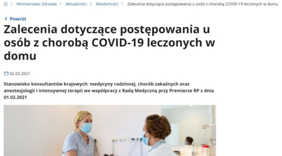 Szanowni Państwo, Poniżej prezentujemy stanowisko konsultantów krajowych: medycyny rodzinnej, chorób zakaźnych oraz anestezjologii i intensywnej terapii we współpracy z Radą Medyczną przy Premierze RP z dnia 01.02.2021 Podsumowanie zaleceń Pacjent leczony z powodu COVID-19 w warunkach domowych, zwłaszcza...